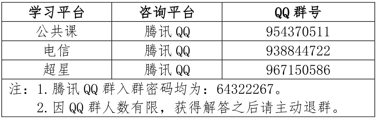 为保障线上学习顺利,管理团队会同各平台技术团队,将继续为您提供咨询服务,方式如下: