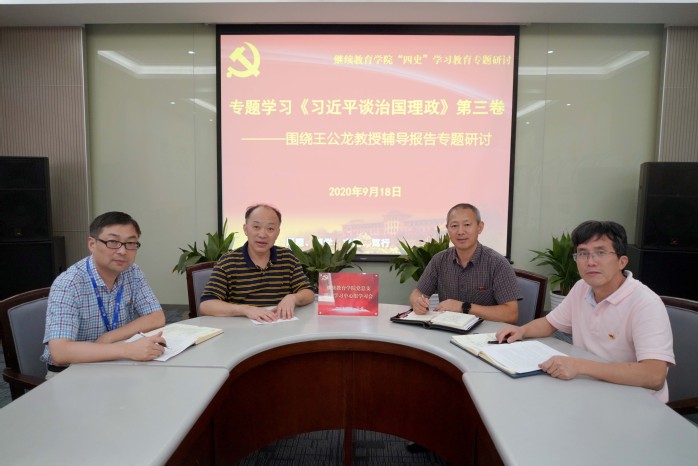 9月18日下午,pp电子官方网站党总支理论学习中心组在学院301会议室举行专题学习会,深入学习《习近平谈治国理政》第三卷,结合市委讲师团“四史”专家宣讲团成员、市委党校马克思主义学院执行院长王公龙教授的辅导报告进行专题学习和研讨,交流学习体会。