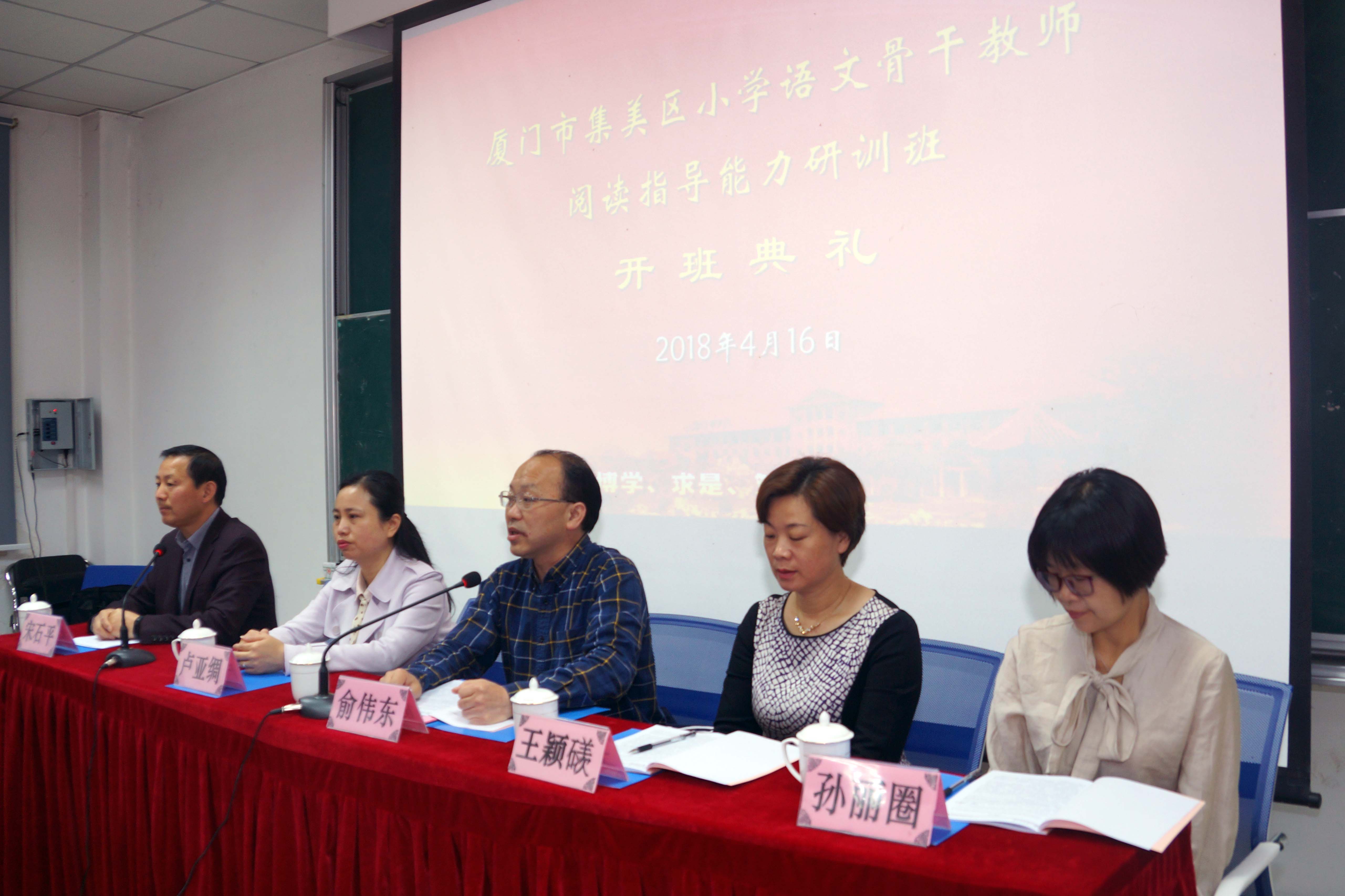 春风四月,围绕小学语文骨干教师在阅读能力提升方面的需求,厦门市集美区小学语文骨干教师阅读指导能力研训班于15日在我院顺利开班。集美区教师进修学校副校长王颖石羡、集美区教师进修学校培训处主任卢亚绸、集美区教师进修学校初教室副主任孙丽圈、pp电子官方网站院长俞伟东出席开班典礼,副院长宋石平主持开班典礼。
