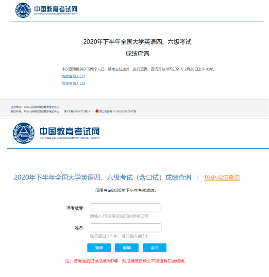 2020年下半年全国大学英语四、六级考试成绩将于2021226日发布,现将有关事宜通知如下: