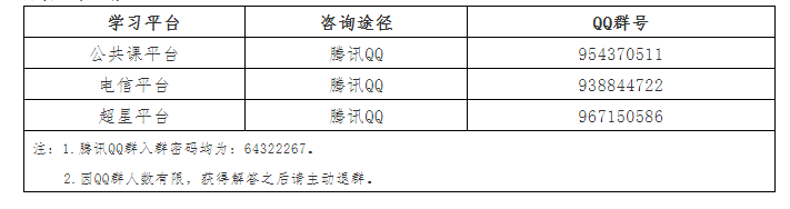 为保障您线上学习顺利,学校成教管理团队将与各平台技术团队一道,为您提供咨询服务,方式如下: