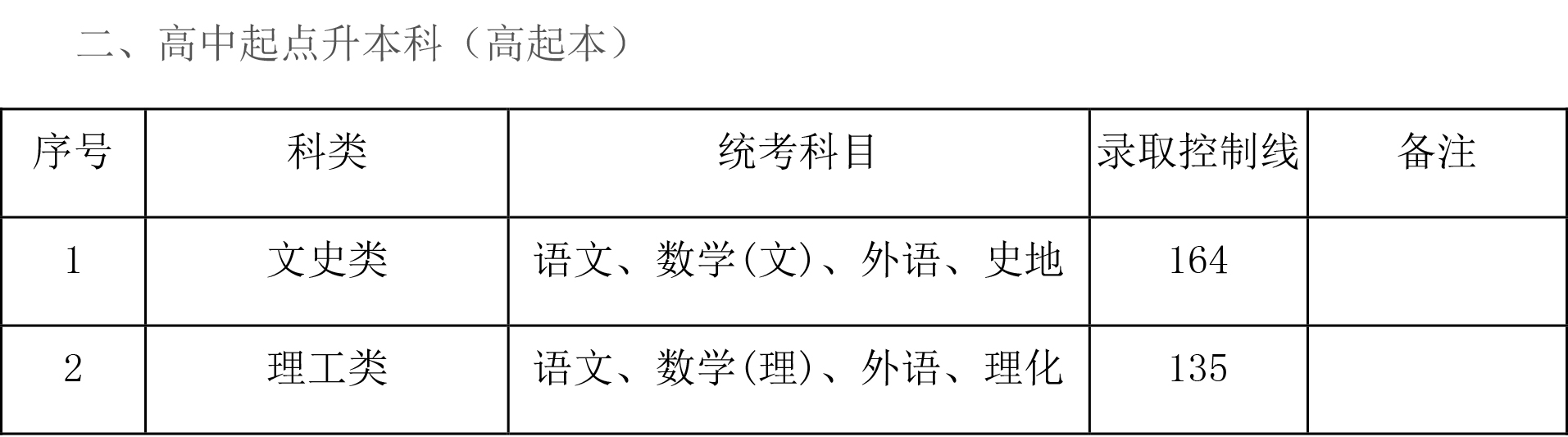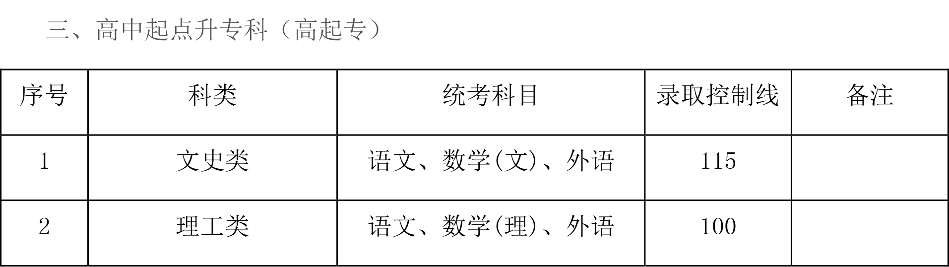 2.高起专体育类专业最低控制分数线不低于相应招生科类的70,专业加试成绩必须合格。