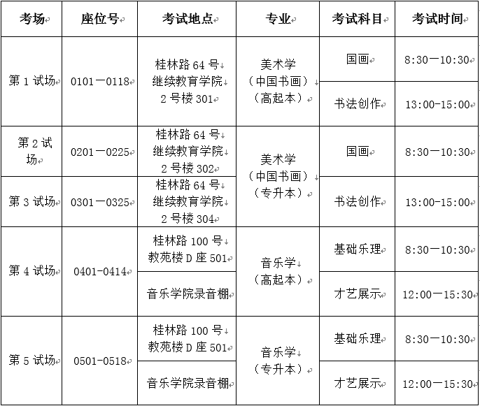 考场安排: