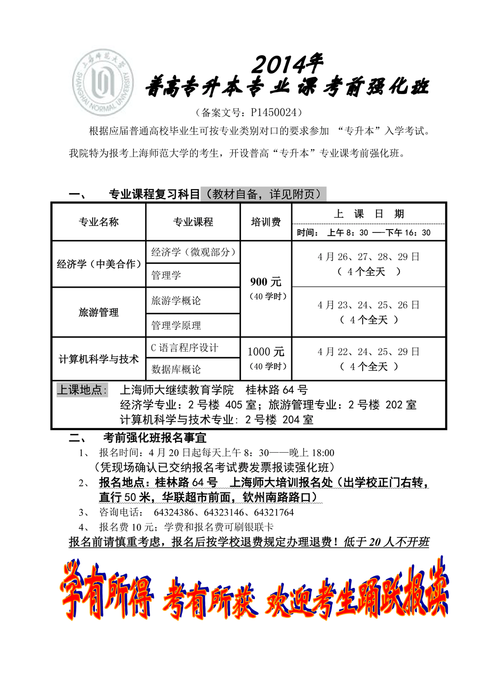2014年普高专升本专业课考前辅导班招生简章