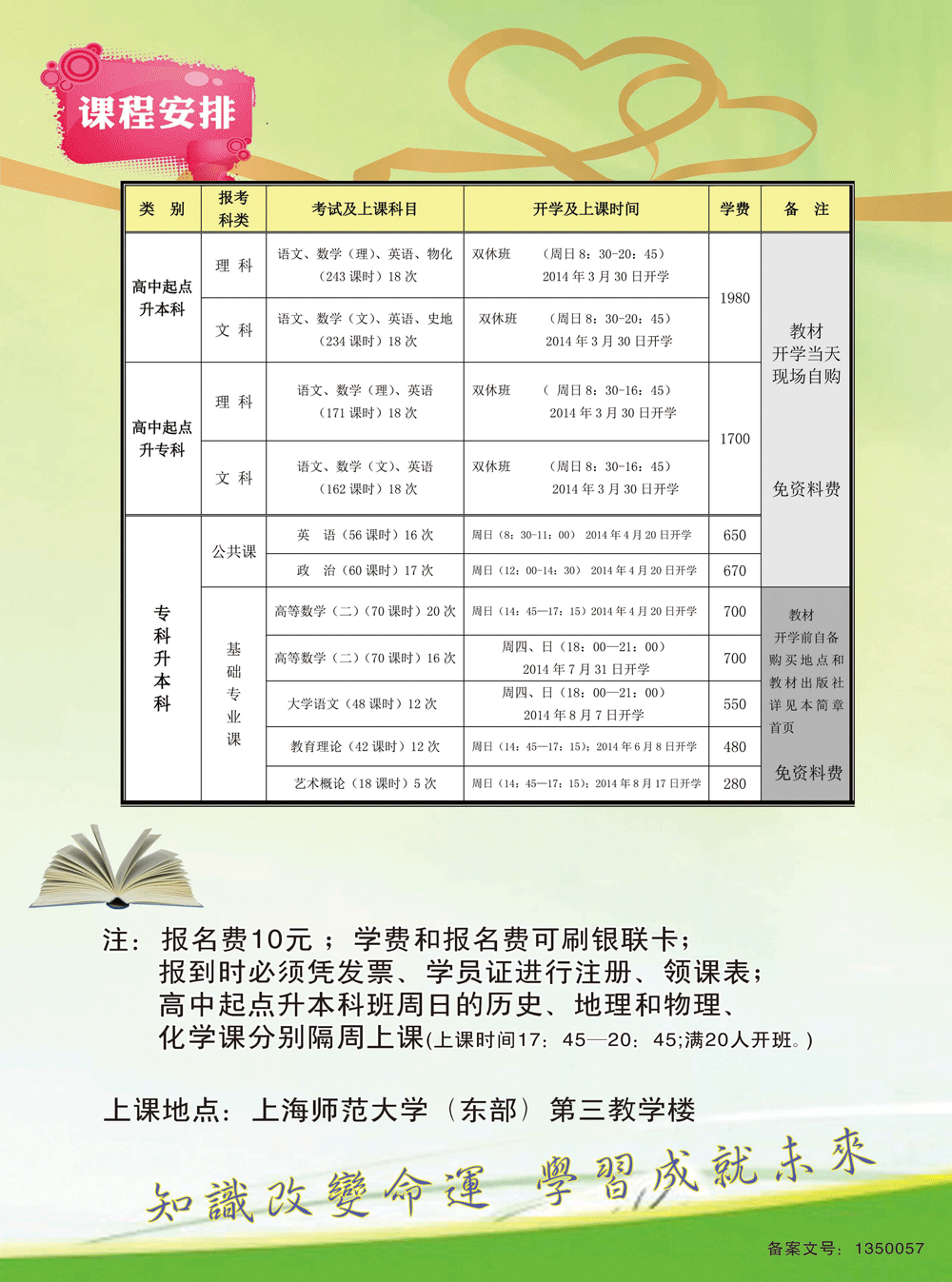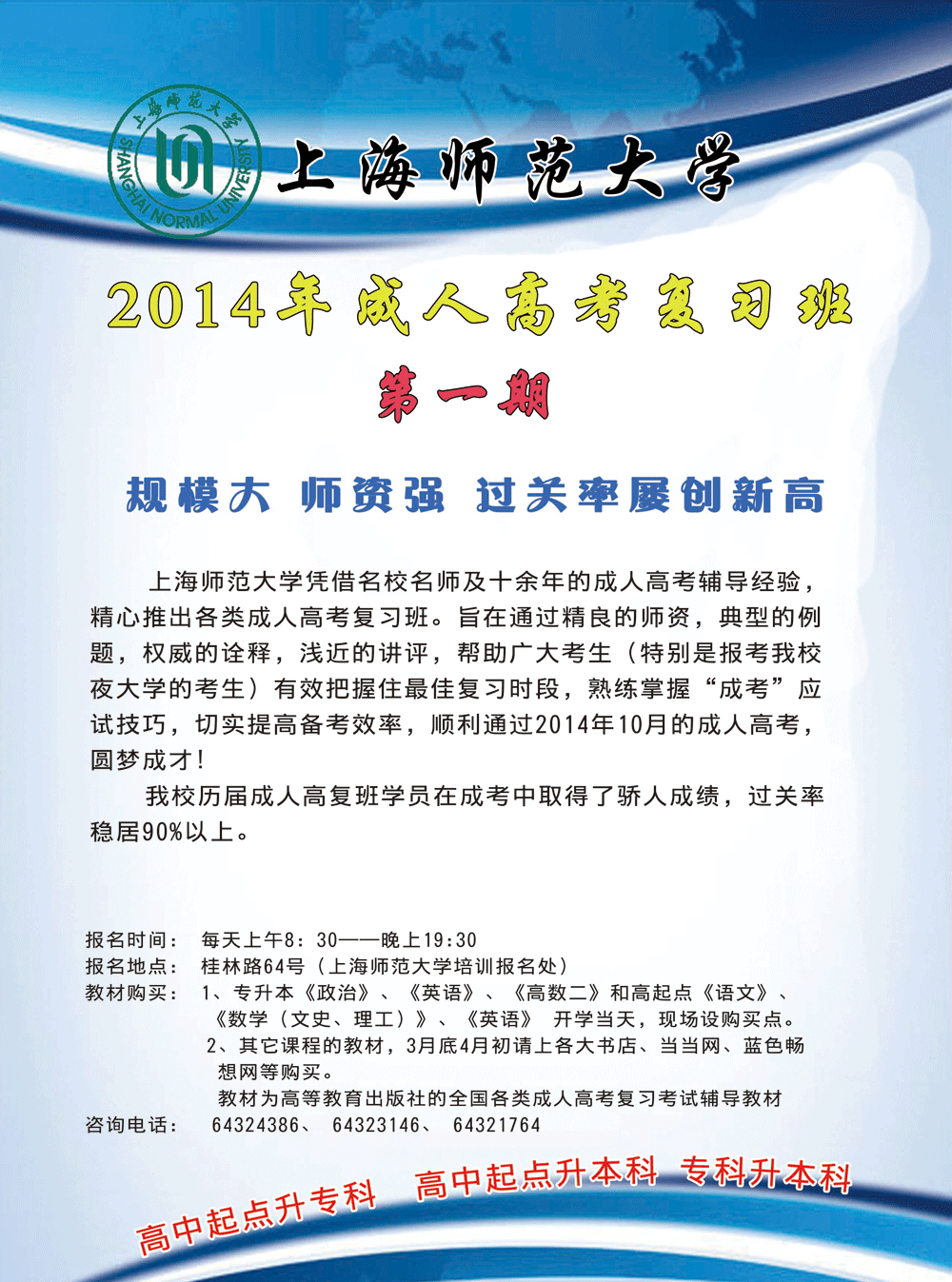 2014年第一期成人高考复习班招生简章(高起点;专升本)