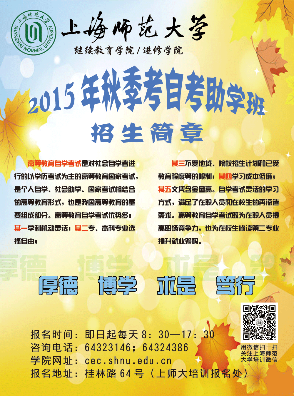 2015年秋季考自考助学招生简章