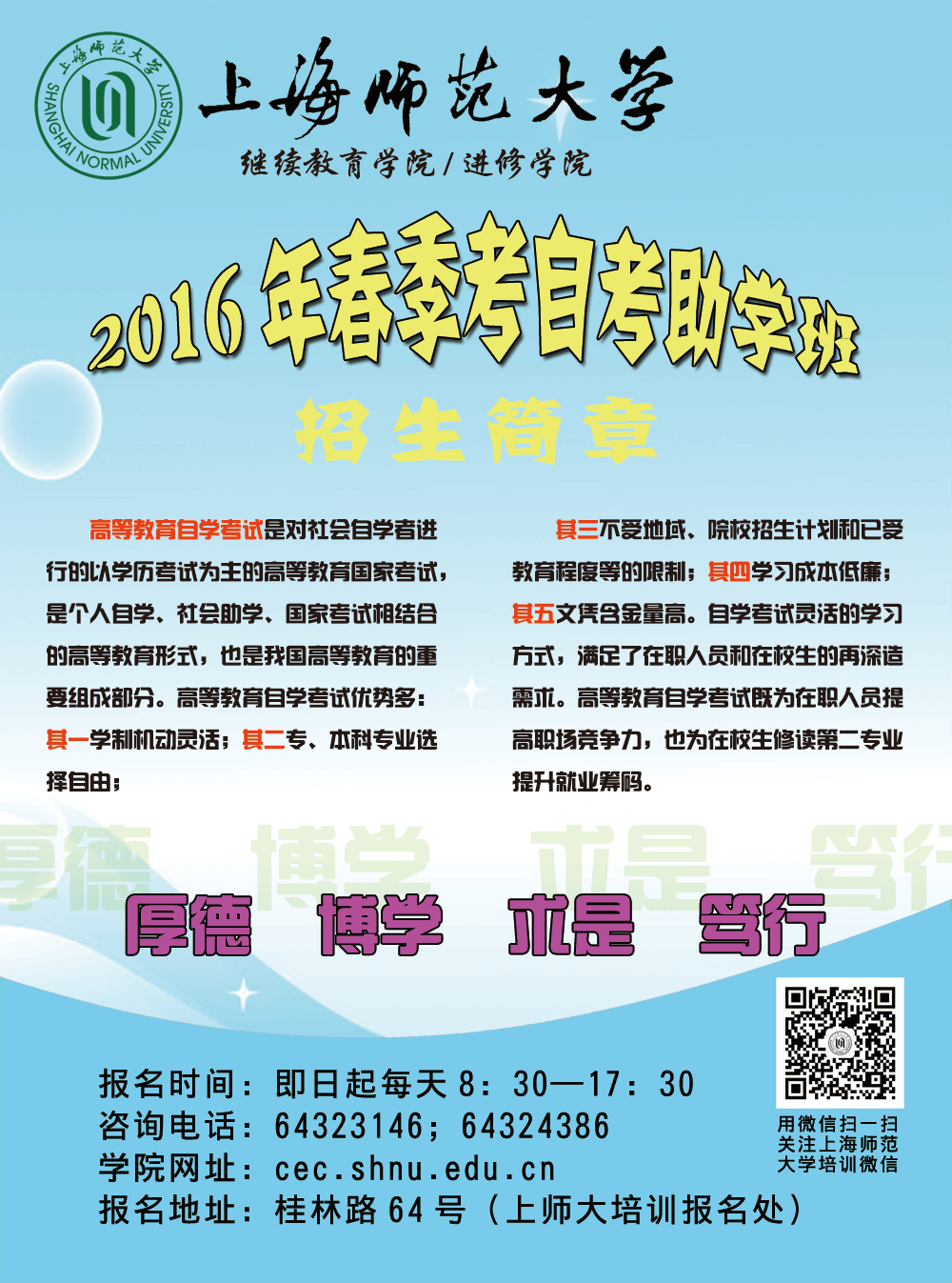 2016年春季考自考助学招生简章