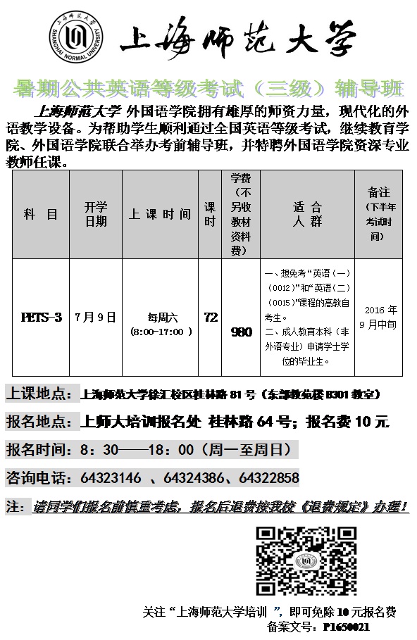 2016年暑期全国公共英语(三级)考前辅导班