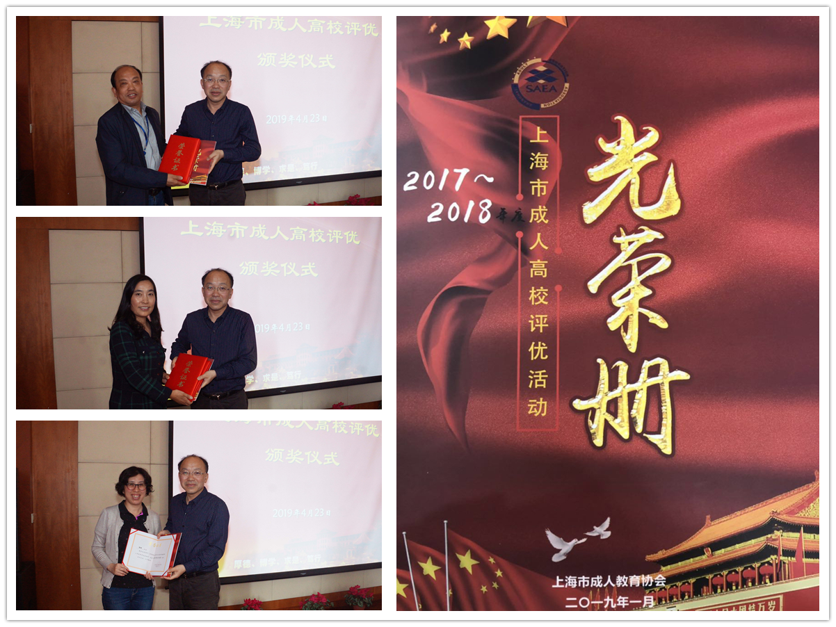 最后,举行了“2017年~2018年上海市成人高校评优”颁奖仪式,由俞伟东院长颁发各项奖项。