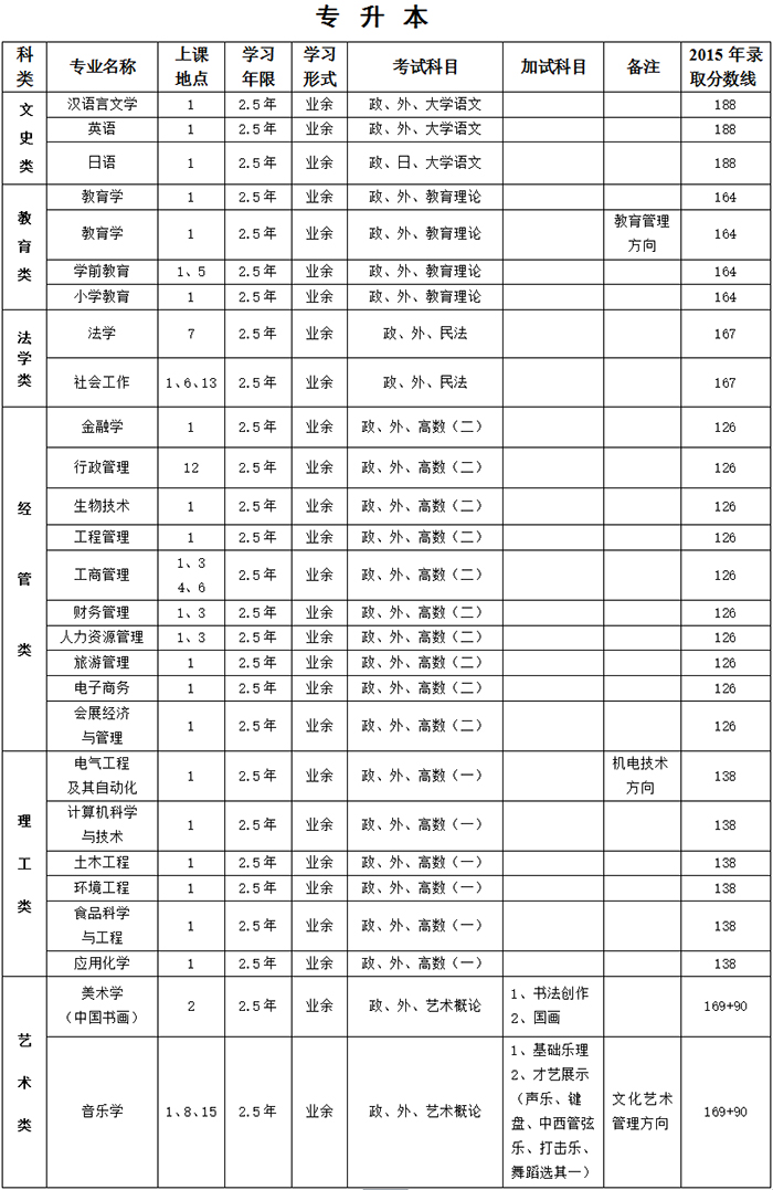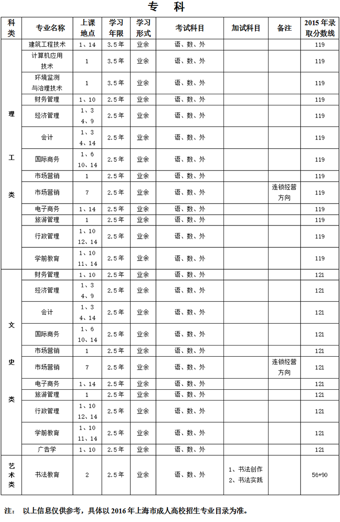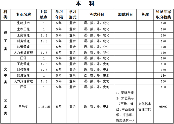 注:开班人数不足的专业,学校将予以停招。