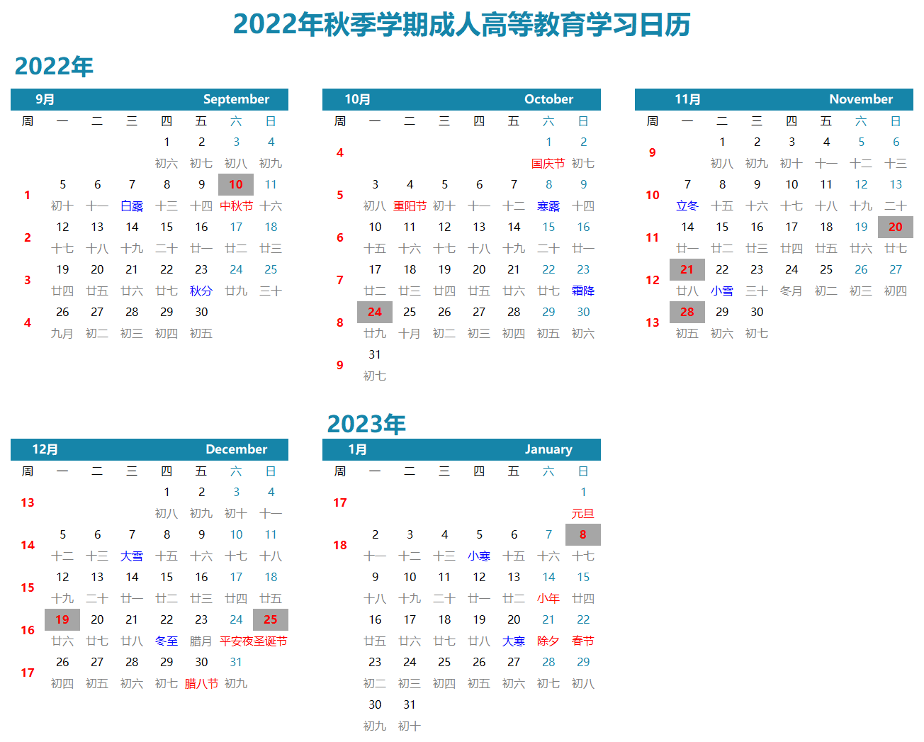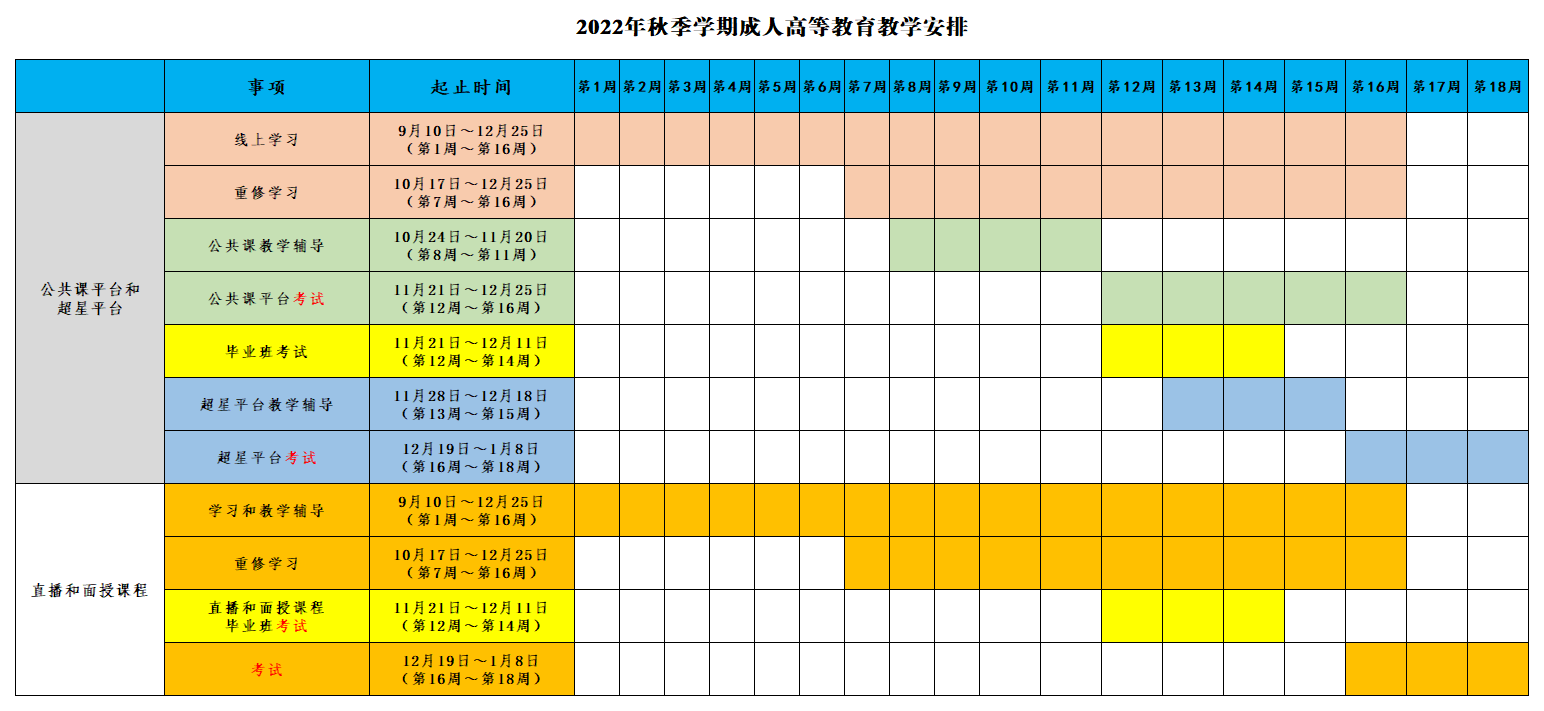 成人高等教育2022秋季学期教学执行计划(点击下载)。