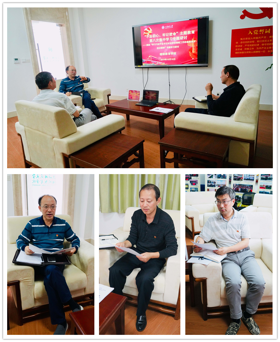 10月10日上午,pp电子官方网站在学院1号楼105室举行“不忘初心、牢记使命”主题教育第八次集中学习研讨,学习习近平总书记对本学科领域工作的重要指示批示精神,院长俞伟东、副院长宋石平作重点发言。
